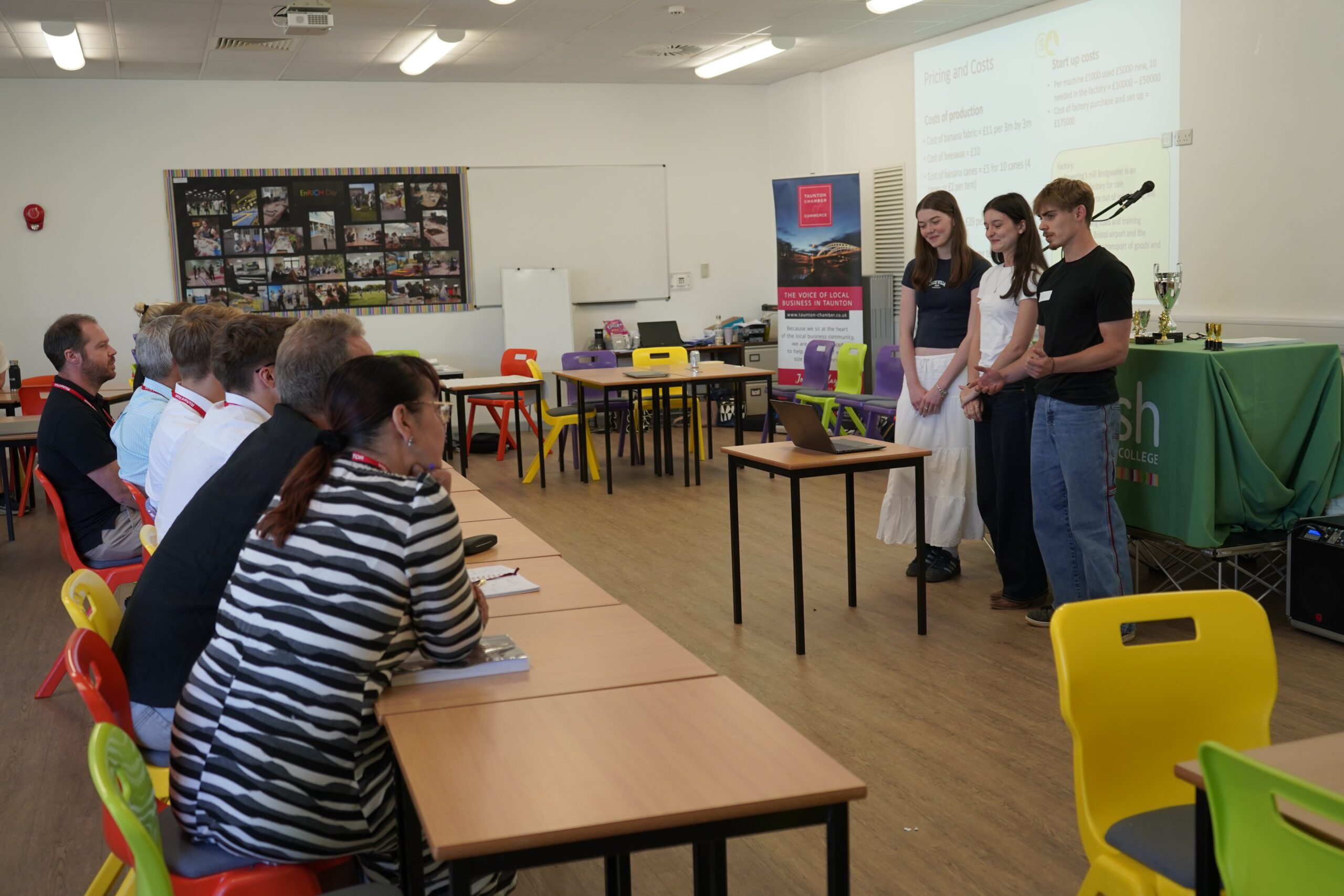 Huish extends a huge thank you to members of the Taunton Chamber of Commerce for giving up their valuable time to support the Huish students and providing such a valuable opportunity to pitch to business specialists.
