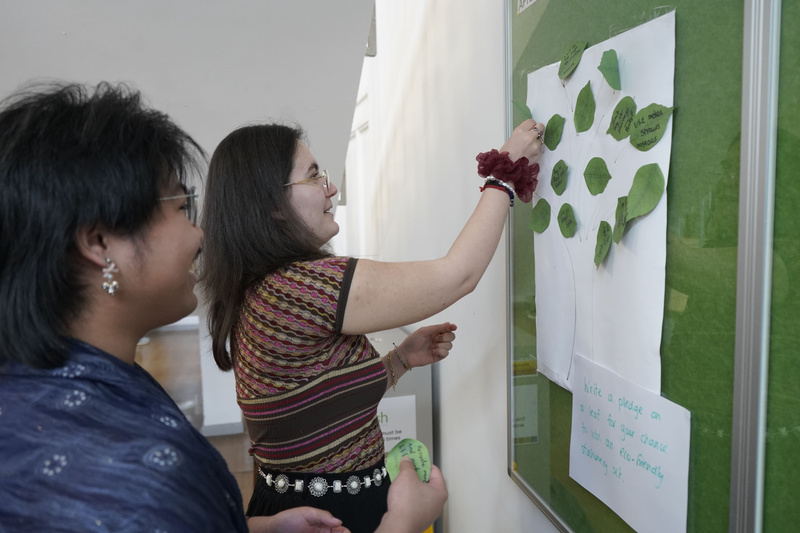 Initiatives include a a litter pick on Willow Green, vegan chocolate and cheese tasting, a stand offering free period pants, and sustainability pledges (with participants entered into a raffle draw at the Spring Concert). On top of all this, a Repair Workshop in the Redwood Suite saw students able to patch repair coats and other items.